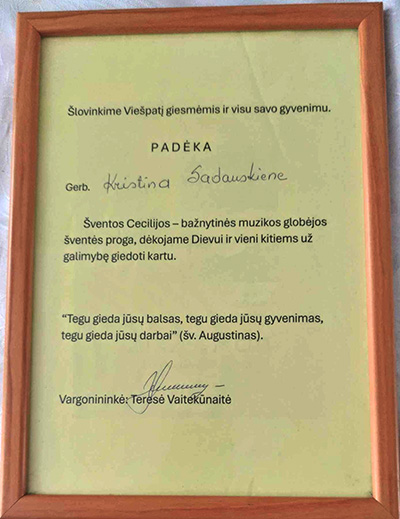 Šv.Cecilija, globok ir saugok mūsų parapijos chorą!