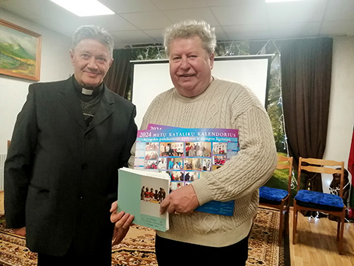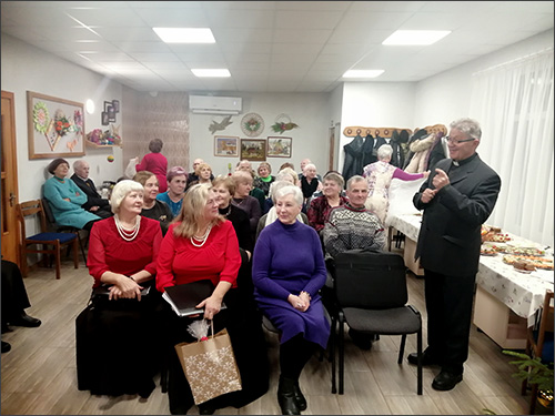 Dalindamiesi kalėdaičiais vieni kitiems linkėjome sveikatos, gerumo, ramybės, atlaidumo, gražių ir dvasingų artėjančių švenčių.