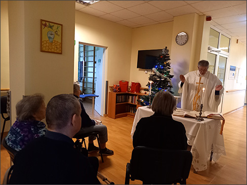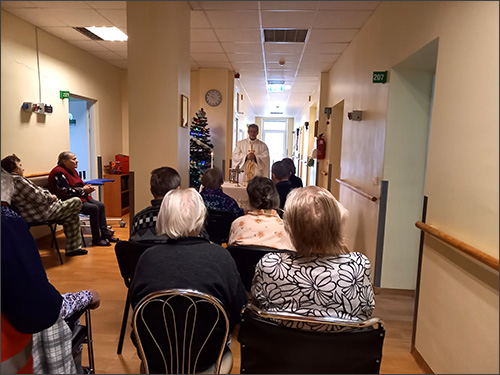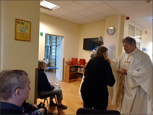 visus ligonius, kurie negalėjo dalyvauti šv. Mišiose, suteikdamas