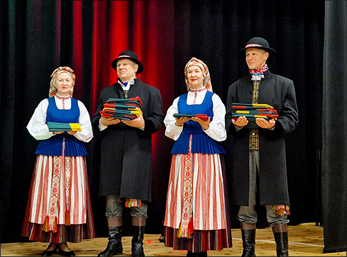 Po to tautiniais rūbais vilkintys žmonės garbingai įnešė Lietuvos tautines vėliavas. Jos, šventės proga, buvo padovanotos nusipelniusiems Ariogalos miesto ir seniūnijos gyventojams. Jas gavo net trisdešimt gyventojų.
