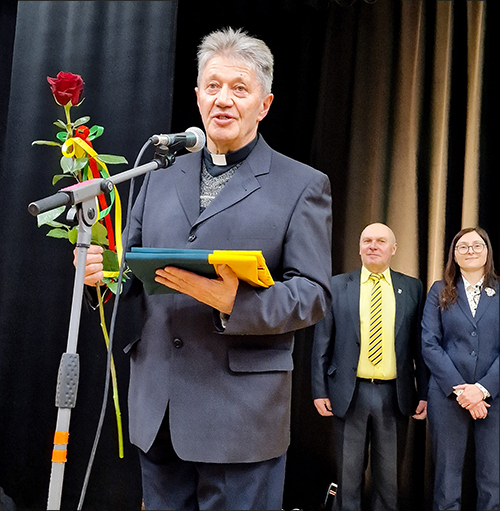 Už puikų vadovavimą parapijai, už nuoširdų bendradarbiavimą su visomis įstaigomis, už darbą su jaunimu ir didelį dėmesį kiekvienam žmogui, Lietuvos valstybine vėliava buvo apdovanotas klebonas G. Jankauskas.