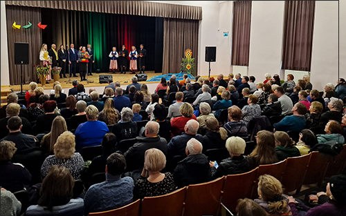 Po šv. Mišių ėjome į Ariogalos kultūros centrą, kur vyko vėliavų įteikimas ir puikus Naglio Marčėno koncertas.