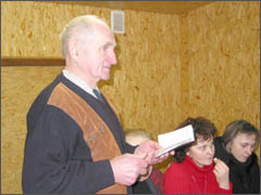 Suintrigavo mūsų parapijos bendruomenės narys, buvęs mokytojas, poetas V. Šulskis prisipažinęs, kad tik gyvenimo draugės paragintas, išmoko vienintelį savo eilėraštį „Akmuo“, kurį įspūdingai ir paskaitė. Šiuo metu jis puoselėja viltį greit išleisti knyga „Ariogalos mažoji enciklopedija“. Ją išleisti pagelbės seniūnijos parama.