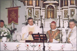 Labai panašus kontrastas yra ši tremtinių šventė Ariogaloje ir tai, ką jūs patyrėte eidami kančios kelius, kuriuos jums paruošė žmonės, norėję jus atskirti nuo Tėvynės ir savųjų. Šiandien yra džiaugsmo šventė, kurios metu skambės dainos, o anuomet buvo gyvuliniai vagonai, badas, šaltis ir neviltis. Tačiau toje naktyje jus lydėjo Dievo Apvaizda ir parvedė atgal į Tėvynę. Net leido sulaukti naujo laisvės ryto. Dievas moka šėtono darbus sugriauti jo paties rankomis. 1941- ųjų ir pokario metų tremtys buvo tarsi cunamis, kurio banga nušlavė geriausius tautos sūnus ir dukras. Nušlavė viską, kas atsidūrė jo kelyje. O tame kelyje buvo patys doriausi lietuviai, mylėję Tėvynę, savo rankomis ir prakaitu kūrę sau ir savo vaikams geresnį gyvenimą. Per dvidešimt Nepriklausomybės metų daugelis buvo prasigyvenę, todėl okupantai juos priskyrė prie liaudies priešų ir siuntė, kaip patys sakė, pas baltąsias meškas. Daugumą tremtinių kančia tik subrandino, kad juose išsipildė apaštalo Pauliaus žodžiai:“Kas gi mus atskirs nuo Kristaus meilės? Ar vargas? ar priespauda? ar persekiojimas? ar badas? ar nuogumas? ar pavojus? ar kalavijas? Ir aš esu tikras, kad nei mirtis, nei gyvenimas, nei jokie kiti kūriniai negalės mūsų atskirti nuo Dievo meilės (Rom 8). Niekas – nei badas , nei šaltis, nei patirtos kančios – nepajėgė atskirti tremtinių nuo Tėvynės, nuo gimtųjų miestų ir kaimų, nuo parapijų bažnyčių, nuo viso to, kas su motinos pienu buvo įaugę į jų kūną ir kraują.