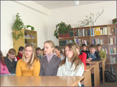 Svečias atsakinėjo į užduotus klausimus. Papasakojo apie vienuolių gyvenimą, pranciškonų vienuolyno regulos reikalavimus. „Savo misiją pranciškonai vienuoliai atlieka ne tik bendraudami su vargšais arba kaip gamtos mylėtojai, vaikščiodami apiplyšę sulopytom alkūnėm, bet ir dėsto Europos universitetuose, dirba Pietų Amerikoje, kur yra dideli socialiniai kontrastai. Aktyviai bendrauja su nuskriaustaisiais ir vargšais,“– kalbėjo gerb. kunigas.