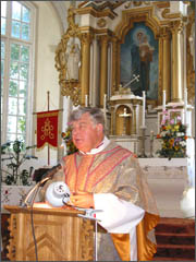 „Broliai ir seserys, kaip viena Dievo tauta, susirinkome dalyvauti šv. Mišių aukoje ir švęsti šv. arkang. Mykolo atlaidų. Džiaugiuosi, galėdamas kartu su jumis melstis ir švęsti Eucharistiją. Kiekvienas dvasinis suartėjimas visapusiškai praturtina mus vieni su kitais artimo meile, krikščioniška meile. Ir jeigu iš šių atlaidų išeisime turėdami bent vieną gražų pasiryžimą savo dvasinei ateičiai, mes būsime ne tik turtingesni sau, bet ir kitiems“.