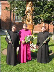 Po to parapijiečiai, dėkodami svečiui įteikė gėlių ir palinkėjo Dievo palaimos.