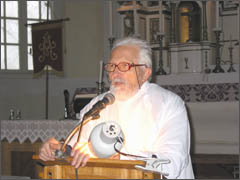 Susirinkusiems Ariogalos šv. arkang. Mykolo bažnyčioje kun. K. Ambrasas SJ gerą pusvalandį nuoširdžiai pasakojo, kaip vyko kelionė su kryžiumi į Šventąją Žemę. Žmonės nepaprastai įdėmiai klausėsi ir gyveno įspūdžių dvasia. Jis sakė: