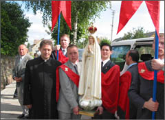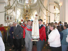Išnešant Fatimos Marijos statulą iš bažnyčios, žmonės ją lydėjo iki gatvės, kiti bučiavo Marijai kojas. Prieš įnešant Fatimos Marijos statulą į bažnyčią uždėjau ant galvos jai karūną ir ant rankų rožančių, o po apeigų prie mašinos nuėmiau karūną ir rožančių. Su džiaugsmu ir meile tikintieji bendravo su svečiais, gavo dovanų po TFP kalendorių - 2005.